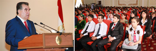 Cуханронии Эмомалӣ Раҳмон, Президенти Ҷумҳурии Тоҷикистон, бахшида ба Рӯзи дониш дар Мактаби байналмилалии президентӣ, шаҳри Душанбе, 1 сентябри соли 2012