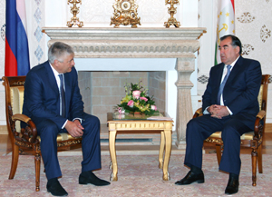 10 октябр Эмомалӣ Раҳмон, Сарвари давлат, Владимир Колоколтсев, вазири корҳои дохилии Федератсияи Русияро, ки барои иштирок дар маҷлиси якҷояи ҳайати мушовараи вазоратҳои корҳои дохилии Тоҷикистону Русия ба Душанбе ташриф овардааст, ба ҳузур пазируфт.