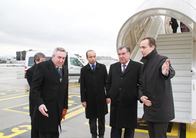 Дар фурудгоҳи байналмилалии пойтахт Эмомалӣ Раҳмон, Президенти Ҷумҳурии Тоҷикистонро Маҳмадсаид Убайдуллоев, Раиси Маҷлиси миллии Маҷлиси Олии Ҷумҳурии Тоҷикистон, Шукурҷон Зуҳуров, Раиси Маҷлиси намояндагони Маҷлиси Олии Ҷумҳурии Тоҷикистон Оқил Оқилов, Сарвазири Ҷумҳурии Тоҷикистон, Бахтиёр Худоёров, роҳбари Дастгоҳи иҷроияи Президенти Ҷумҳурии Тоҷикистон ва дигар шахсони расмӣ гусел намуданд.