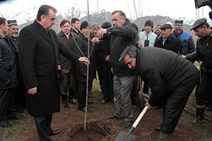 10 апрел Президенти кишвар Эмомалӣ Раҳмон барои иштирок дар оғози бунёди боғи нав ва мулоқот бо мардум ба ноҳияи Файзобод сафар кард.
