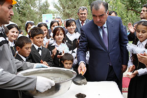 Президенти кишвар Эмомалӣ Раҳмон дар Ҷамоати деҳоти 20 - солагии Истиқлолияти Тоҷикистони ноҳияи Қубодиён бо гузоштани санги асос ва нома ба наслҳои оянда ба сохтмони мактаб - интернат барои 240 хонандаи ятиму бепарастор ва аз оилаҳои ниёзманд оғоз бахшид.