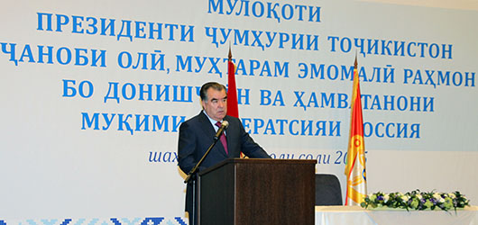 Суханронии Эмомалӣ Раҳмон, Сарвари давлати Тоҷикистон, дар мулоқот бо намояндагони диаспора ва муҳоҷирони кории тоҷики муқими Ҷумҳурии Бошқирдистони Федератсияи Русия, 8 июли соли 2015