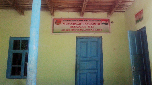Боми ҳамаи биноҳои деҳа бо рангҳои дурахшони чашмрас шиферпӯшанд, ба ҷуз боми мактаб. Боми хокпӯшидаю ду ҳуҷраи ба таври бобоӣ сохтаи бесақфу шифти онро дида, бовари кас намеояд, ки ҳамин бинои муассисаи таълимист. Хайрият, деворҳои синфхонаҳоро рангубор намуда, бо асбобҳои аёнии таълимӣ оро додаанд. Бо муаллим Ҳокимхон Дилбаров пас аз анҷоми дарс ҳамсуҳбат мешавем.