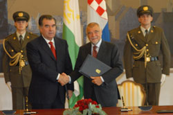 Зери Эъломияи муштарак дар бораи рушди минбаъдаи муносибатҳои дӯстӣ ва ҳамкориҳо миёни Ҷумҳурии Тоҷикистон ва Ҷумҳурии Хорватия сарони ду давлат - Эмомалӣ Раҳмон ва Стипе Месич имзо гузоштанд.