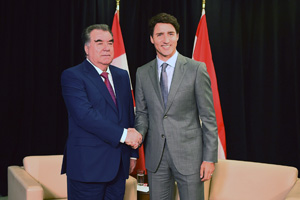 20 сентябр дар шаҳри Ню - Йорк дар ҳошияи Иҷлосияи 72 - юми Маҷмаи умумии Созмони Милали Муттаҳид Асосгузори сулҳу ваҳдати миллӣ - Пешвои миллат, Президенти Ҷумҳурии Тоҷикистон муҳтарам Эмомалӣ Раҳмон бо Сарвазири Канада Ҷастин Трюдо мулоқоти самимӣ ва созанда анҷом доданд.