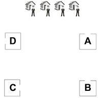 Чор мактаббача, ки дар хонаҳои А, В, С, D зиндагӣ мекунанд, ба мактабҳои А, В, С, D дарсхонӣ мераванд. Як саҳар пас аз он ки шаб барфи зиёде борида буд, дида мешуд, ки изи пойи бачаҳо дар ягон ҷойи роҳ якдигарро набурида ва аз дохили чоркунҷа берун нашудаанд.