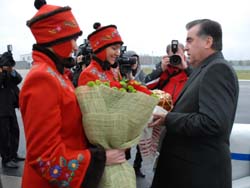 Дар фурудгоҳи пойтахт Президенти Ҷумҳурии Тоҷикистон Эмомалӣ Раҳмонро Раиси Маҷлиси миллии Маҷлиси Олии Ҷумҳурии Тоҷикистон Маҳмадсаид Убайдуллоев, Раиси Маҷлиси намояндагони Маҷлиси Олии Ҷумҳурии Тоҷикистон Сайдулло Хайруллоев, Сарвазири Ҷумҳурии Тоҷикистон Оқил Оқилов, роҳбари Дастгоҳи иҷроияи Президенти Ҷумҳурии Тоҷикистон Амиршо Миралиев ва дигар ашхоси расмӣ гусел намуданд.