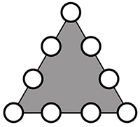 Дар доирачаҳо рақамҳои аз 1 то 9 –ро тавре ҷойгир намоед, ки ҳосили ҳар як тарафи секунҷа ба 17 баробар бошад. Рақамҳо бояд такрор нашаванд.