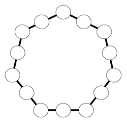 Рақамҳои аз 1 то 14 – ро дар дохили доирачаҳо тавре гузоред, ки ҳосили ҷамъи ҳар тараф, яъне се доирачаи пай дар пай ба 19 баробар шавад.