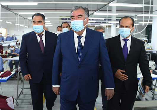 Сарвари давлат аз намоиши маҳсулоти истеҳсолкардаи ин коргоҳ, ки аз сарулибоси мактабӣ, хилъатҳои тиббӣ, ниқобҳои муҳофизатӣ, матоъҳои безараркардашуда ва корҷомаҳо барои амалиёти ҷарроҳӣ иборат аст, боздид намуданд.