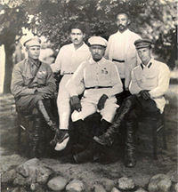 Дар расм: аъзои Комиссияи давлатӣ оид ба мубориза бо босмачигарӣ. Аз чап ба рост: Вайнерх- фармондеҳи бригадаи 6 олтоӣ, Ш. Шоҳтемур, намояндаи ваколатдори Комиссияи марказии назоратии ПК (б) Ӯзбекистон дар ҶМШС Тоҷикистон ва ҳамзамон комиссари халқии идораи нозироти коргару деҳқони ҶМШС Тоҷикистон, С. Раҷабов, котиби Кумитаи инқилобии ҶМШС Тоҷикистон, А. Ёрмуҳаммадов - комиссари халқии корҳои дохилии (НКВД) ҶМШС Тоҷикистон, А. Кропочев - комиссари низомии бригадаи 6 олтоӣ. Тобистони соли 1925, шаҳри Кӯлоб.