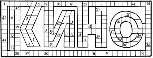 1. Филме, ки ба озодии маънавии зани тоҷик бахшида шудааст. 2. Яке аз операторони филми «Рустам ва Суҳроб». 3. *** Кузин, оператори ҳуҷҷатнигор, муаллифи филми ҳуҷҷатии «Иван тоҷик». 4. Унсури кимиёвӣ. 5. Ҳунарпешаи халқии Тоҷикистон, иҷрогари нақши Қорӣ – Исмат дар филми «Марги судхӯр». 6. Ҳарфи алифбои ниёгон. 7. Иҷрогари нақши асосӣ дар филми «Ситорае дар тирашаб». 8. Кинотеатр дар шаҳри Душанбе. 9. Филми Д. Худоназаров. 10. Муаллифи нақши Рӯдакӣ дар филми «Қисмати шоир». 11. Ҳунарпешаи халқии Осетияи Шимолӣ, иҷрогари нақши «Ҳасани аробакаш». 12. Водие, ки воқеаҳои филми «Одам пӯсташро иваз мекунад» он ҷо гузаштааст. 13. Достони машҳури адабиёти классикии тоҷик, ки дар асоси он чанд филми бадеӣ офарида шудааст. 14. Филми Д. Худоназаров, ки ба ҳаёти халқи тоҷик бахшида шудааст. 15. *** Қосимов, актёри театру кино, Ҳунарпешаи халқии Тоҷикистон. 16. Номи ҳайвони саворӣ дар филми «Рустам ва Суҳроб». 17. *** Сайфиддинов, композитори шинохтаи тоҷик, Ҳунарпешаи халқии Тоҷикистон, ки ба филмҳои зиёди истеҳсоли киностудияи «Тоҷикфилм» оҳанг эҷод намудааст. 18. *** Ҳасанов, актёр, Ҳунарпешаи халқии Тоҷикистон. 19. Қаҳрамони достони «Шоҳнома» - и Фирдавсӣ, ки нақши ӯро дар филм Бимболат Ватаев бозидааст. 20. Ҳунарпешаи халқии Тоҷикистон, ки яке аз нақшҳои асосии филми «Падари моҳтобӣ»-и Б. Худойназаровро иҷро кардааст. 21. Жанри санъати театр ва кино. 22. Персонаж аз достонҳои «Шоҳнома». 23. Таҳиягари филми «Одам пӯсташро иваз мекунад». 24. Навъи хати арабӣ. 25. Кинорежиссёри шинохтаи тоҷик, режиссёри дуюми филми «Рустам ва Суҳроб». 26. Сухани вопасин. 27. Исми Ҳунарпешаи халқии Тоҷикистон, таҳиягари филми сегонаи «Ҳеҷбудагон ҳар кӣ шуданд». 28. Нақше, ки онро Маҳмуд Воҳидов дар филми «Ҳасани аробакаш» иҷро кардааст. 29. *** Кимёгаров, Ҳунарпешаи халқии Тоҷикистон, барандаи Мукофоти давлатии Тоҷикистон ба номи Абуабдуллоҳи Рӯдакӣ. 30. Исми адиби тоҷик, муаллифи киноповести «Қисмати шоир». 31. Режиссёр, ҳуҷҷатнигори шинохтаи тоҷик. 32. Ихтисораи русии мактаби бузурги санъати кино дар Федератсияи Россия. 33. Таҳиягари филмномаҳои шинохтаи тоҷик. 34. Романи адабиёти муосири тоҷик. 35. Филми таҳиягари шинохтаи тоҷик Валерий Аҳадов. 36. Ҷирми осмонӣ. 37. Нахустин филми бадеии овозадори тоҷик. 38. Романи Садриддин Айнӣ. 39. Шаҳри энергетикҳо. 40. Маҷаллаи соҳавии кино дар Ҷумҳурии Тоҷикистон. 41. Мукофоти аз ҳама олитарин дар соҳаи кино. 42. Андешаи ботинӣ дар танҳоӣ. 43. Аввалин кинорежиссёри тоҷик, Ҳунарпешаи халқии Иттиҳоди Шуравӣ. 44. Ба ҳам омадан, якдигарфаҳмӣ. 45. Унсури адабӣ.