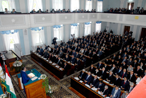 Сарвари давлат Эмомалӣ Раҳмон нахуст ҳамаро ба муносибати оғози фаъолияти Маҷлиси миллӣ ва Маҷлиси намояндагони даъвати нав, инчунин понздаҳсолагии таъсисёбии Маҷлиси Олӣ самимона табрику таҳният гуфт.