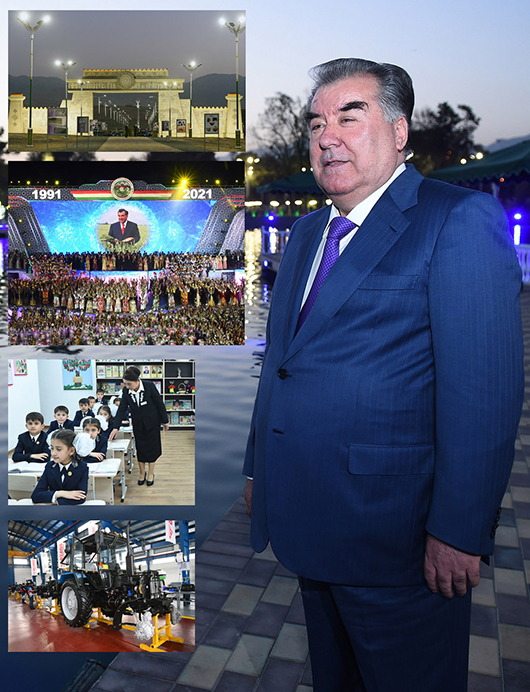 Халқи Тоҷикистон бо сарварии Президенти муҳтарам дар ба даст овардани сулҳу ваҳдати миллӣ, ватансозӣ, давлатдорӣ, халқпарварӣ шуҳрати ҷаҳонӣ пайдо кард. Тамоми шаҳру деҳоти Тоҷикистон бамаротиб обод шуд, симои наву назаррабо гирифт.
