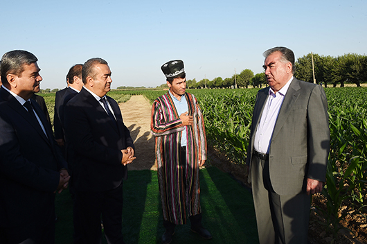 Пешвои миллат муҳтарам Эмомалӣ Раҳмон зимни шиносоӣ аз нашъунамо ва ҳосилбандии зироати кишоварзӣ дар кишти такрорӣ, хусусан ҷуворимакка барои дон ва маҳсулоти полизӣ, аз таҷрибаи заминдории кишоварзони ноҳияи Ҷайҳун изҳори қаноатмандӣ намуда, самараи меҳнати аҳлонаи онҳоро намуна арзёбӣ карданд.
