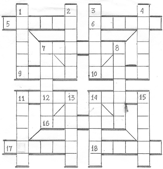 5. Поёни ҳар кору амал. 6. Қаҳрамони достонҳои «Шоҳнома» - и Фирдавсӣ. 7. *** Асанова, раққоса, Ҳунарпешаи шоистаи Тоҷикистон. 9. Мадду ҷазрро гӯянд. 10. Оҳардодашуда. 11. Узвҳои маҳрамонаи инсон. 14. *** Шанбезода, шоир ва муҳаққиқи тоҷик. 16. Тамғаи мошини сабукрави хориҷӣ. 17. *** Ҳошимӣ, адиби кӯдакон. 18. Персонажи «Шоҳнома» - и Фирдавсӣ.