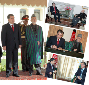 Эмомалӣ Раҳмон ва Ҳомид Карзай нахуст дар мулоқоти хоса ва сипас бо иштироки ҳайатҳои расмии ду кишвар масоили вобаста ба ҳамкории бисёрпаҳлуи Тоҷикистону Афғонистонро мавриди баррасӣ қарор доданд.