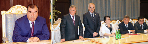 8 июн Эмомалӣ Раҳмон, Президенти кишвар, бо аъзои ҳукумати ҷумҳурӣ, роҳбарони идораҳои назди ҳукумат, масъулини Дастгоҳи иҷроияи Президенти Ҷумҳурии Тоҷикистон ва дигар шахсони дахлдор машварати корӣ доир намуд.