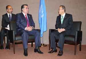 Дар оғоз Эмомалӣ Раҳмон, Сарвари давлат, таъкид кард, ки «ҷониби Тоҷикистон аз сатҳи олии ҳамкории худ бо Созмони Милали Муттаҳид, ки чанде пеш мо бистумин солгарди онро ҷашн гирифтем, қаноатманд аст».